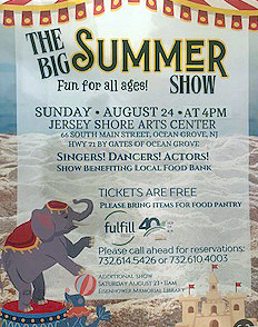 The Big Summer Show, presented by local non-profit Performing Arts Ensemble, is coming to Jersey Shore Arts Center on August 24 at 4pm. Fun for the whole family, tickets are FREE but must be reserved in advance by calling 732.614 5426 or 732.610.4003. Guests are encouraged to bring a nonperishable food item donation benefiting Fulfill.